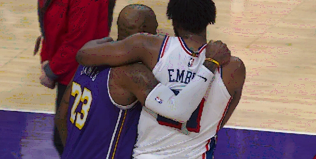 mk体育官网-胜负已定之时 詹姆斯拥抱恩比德 两人有说有笑